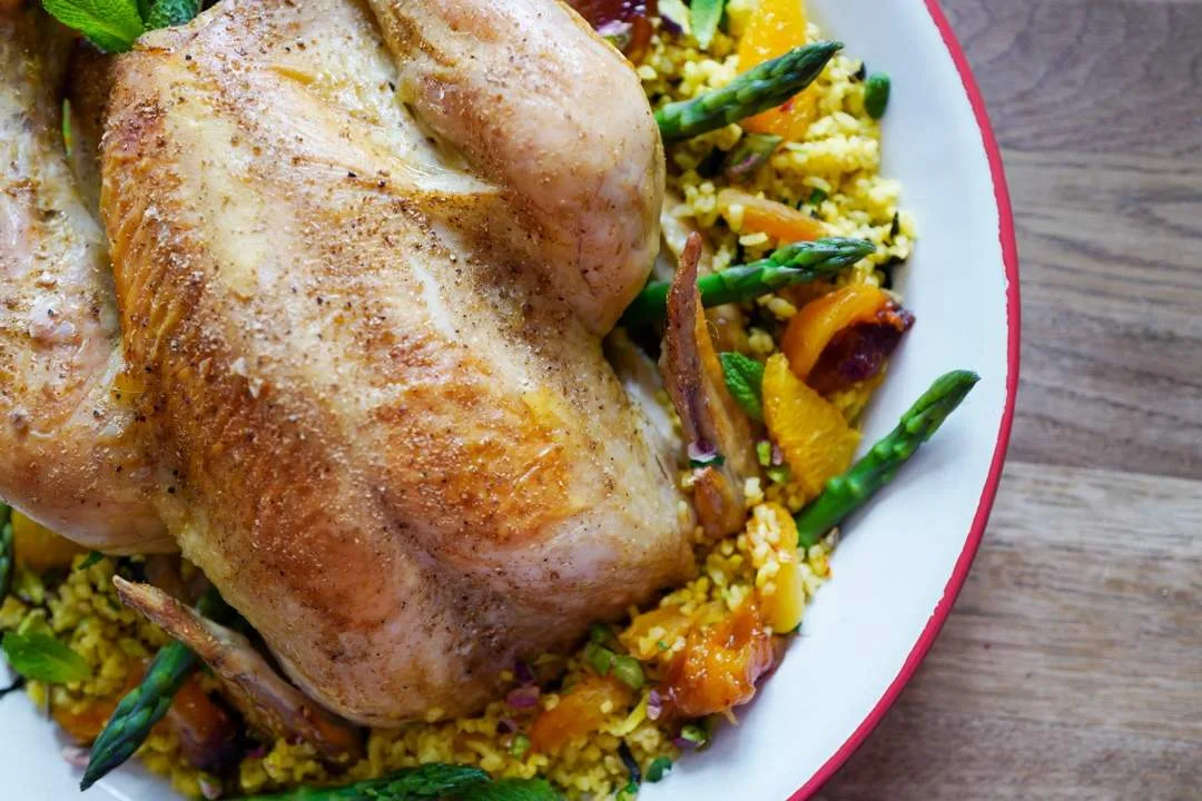 Lam er påske for mange og de siste årene har også and vært populært. Men lite slår en helstekt kylling, eller hva? Min kylling er fra Lerstang. Denne kyllingen får du på Meny og Jacobs. Produsenten, Gårdsand, som også produserer Lerstang-kylling er anbefalt av Dyrevernalliansen for god dyrevern. Det er viktig for meg når jeg velger kylling.