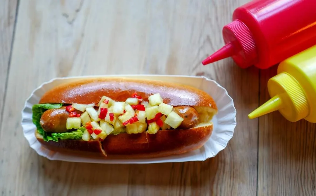 Chorizopølse med ananas- og chilisalsa. Det er den perfekte kombinasjonen. Chorizopølsen til Grøstadgris er mild i smaken så den tåler mye trøkk. Salsaen som jeg har brukt lager du lett ved å dele en bit søt ananas i bittesmå terninger, blande den med finhakket chili. Lag en lake der du koke 1 dl vann med 1 ss sukker og 2 ts eplecidereddik til væsken får store bobler og går over til å bli sirup. Bland med ananas og chili og server.