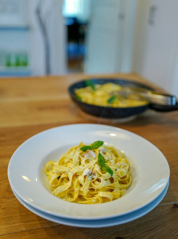 Når jeg ser et stykke røkt kolje, torsk eller blåkveite i fiskedisken ender jeg nesten alltid opp med å kjøpe det. Jeg elsker røkt fisk! Det er perfekt å bruke i en deilig pastarett for lite gir mye smak.