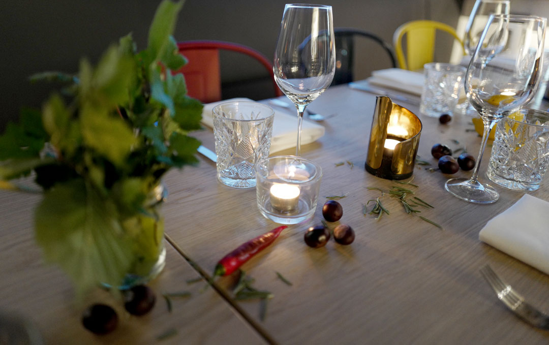 Langbordet var dekket med kastanjer fra Bygdøy allé (gata mi) for å virkelig sette oss i høstmodus. Men vi skal ikke bare sette oss til bords og la oss servere god mat. Vi skal lære om AEGs dampovn og hvordan den kan hjelpe oss til å tilberede perfekt stekt kjøtt med riktig temperaturinnstillinger og fremgangsmåte.