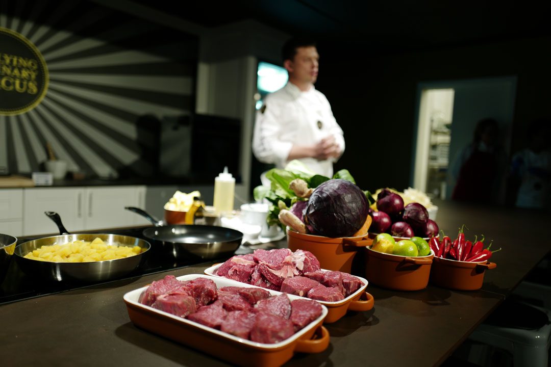 Jeg ankommer lokalene til The Flying Culinary Circus på Skøyen i Oslo. De har laget dette arrangementet på oppdrag fra AEG. De har et meget spennende produkt på markedet – SteamPro-ovn med damp med matlagingstermometer og de flinke kokkene skal vise oss hvordan man steker den perfekte biffen med bruk at den nye ovnen.