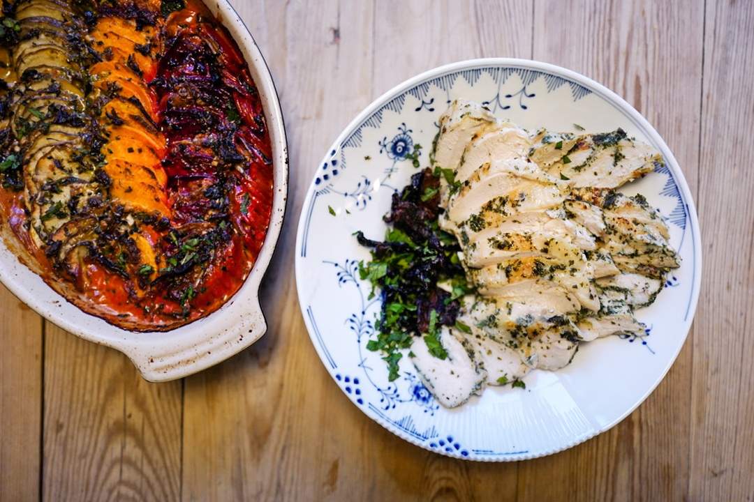 Altså, når kylling ikke tar tid å lage er det heller ikke noen grunn til å bruke masse tid på resten av tilbehøret. Det lager seg selv i ovnen. Du må skjære litt ingredienser men utover det er det bare å lene seg tilbake og nyte noen solstråler på verandaen.