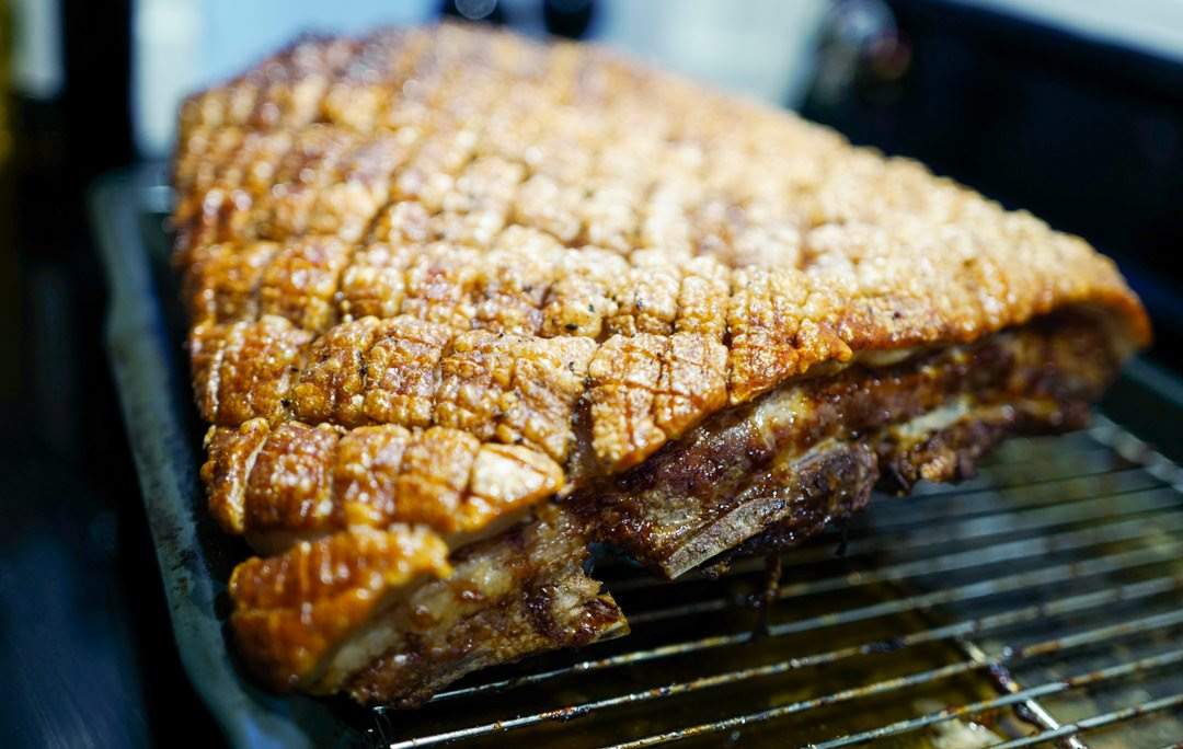Krøll sammen baller av folie og støtt opp under ribben slik at den er jevn uten “søkk” på midten. Får du søkk i midten av ribben vil fett fra under svoren danne dammer på toppen av svoren og da kan du bare kysse den sprø svoren farvel.