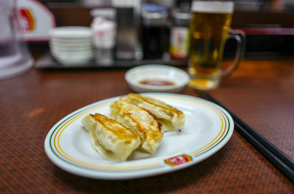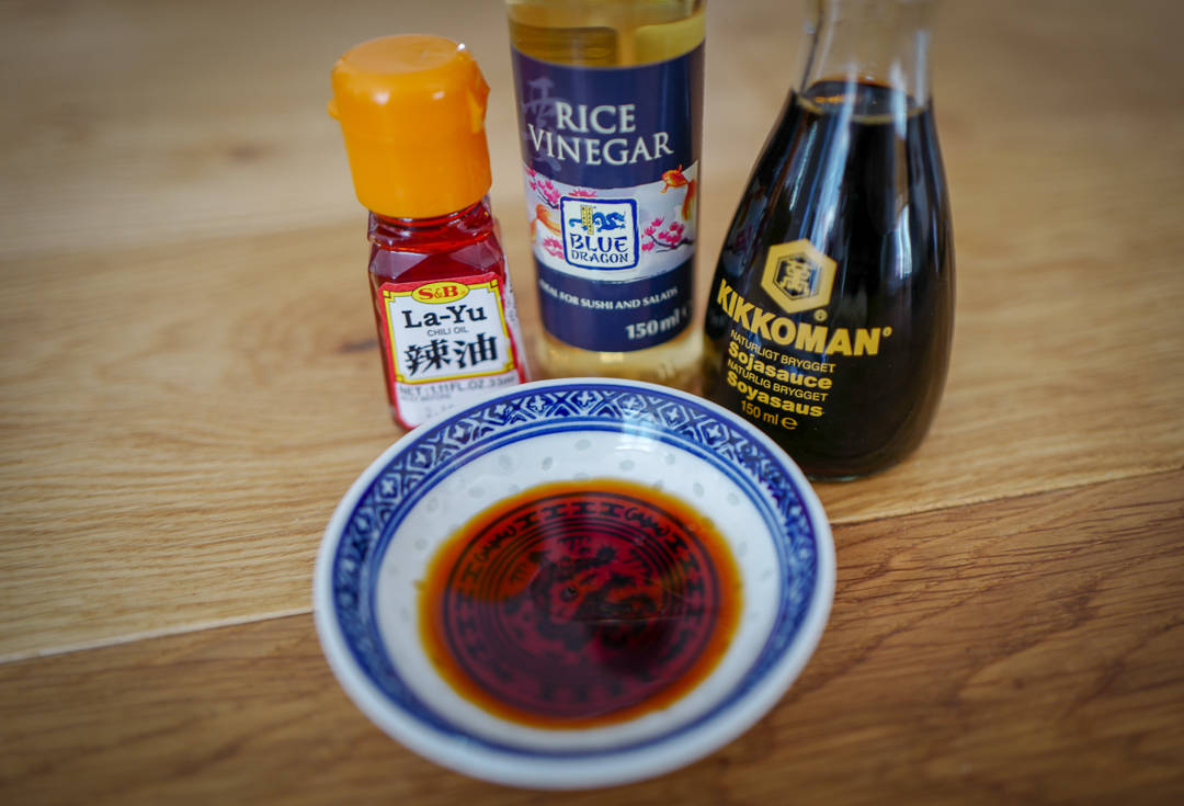 I en liten skål heller du 1 del soyasaus, 1/2 del riseddik og valgfrie dråper av La-Yu (japansk chiliolje). Gyozaene dyppes i denne sausen og nytes med en kald øl til. På Asian Food Market i Oslo selger de diverse japansk øl, f.eks Sapporo. I like!