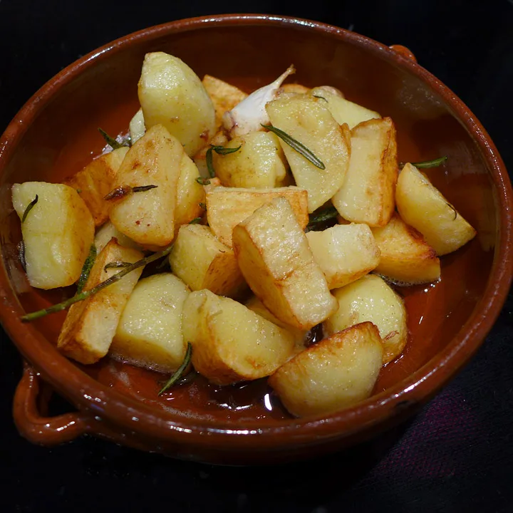 Jeg har vært i Toscana i påsken. Et av de aller vanligste tilbehørene der nede er poteter stekt i olivenolje og rosmarin. Jeg har laget min versjon som smaker utrolig godt til kjøtt, hvit fisk eller til spekemat.