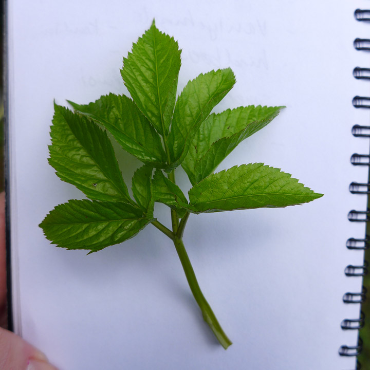 Den første planten vi plukket var en skvalderkål. Dette er et ugress som er vanskelig å bli kvitt. De unge skuddene er blanke og lysegrønne, og det er disse som smaker best. Hvordan kjenne den igjen? Den har 3x 3 blader (9 stk totalt), trekantet stilk, bladene kan være litt sammenklistret. Stilken har ingen hår og den kan være rød nederst. Bladene er taggete og planten blomstrer senere på våren/sommeren.