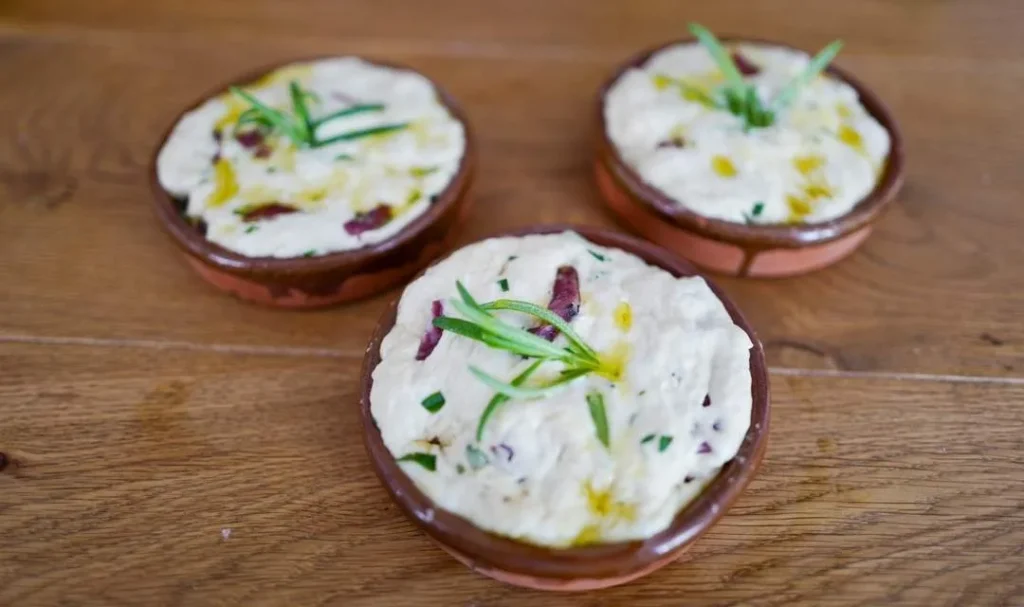 Finn frem små former som tåler ovnen. Jeg bruker tapas-skåler. Smør dem med rikelig med olje og ha deigen over i formene. Press finger i deigen slik at du får hull. Hell litt mer olivenolje over og strø litt flaksalt på toppen.