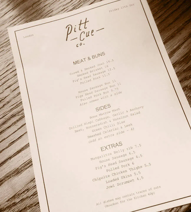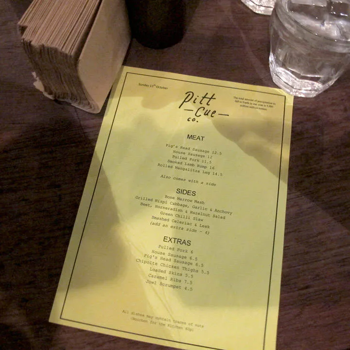 Man skulle tro at en restaurant som Pitt Cue ville være et hipsterhøl med mat som var bra tidligere, men som gradvis har blitt dårlige i takt med populariteten, samt sur betjening. Stedet er langt fra det. Servicen er fantastisk, maten er himmelsk og prosenten av hipstere er under 5.