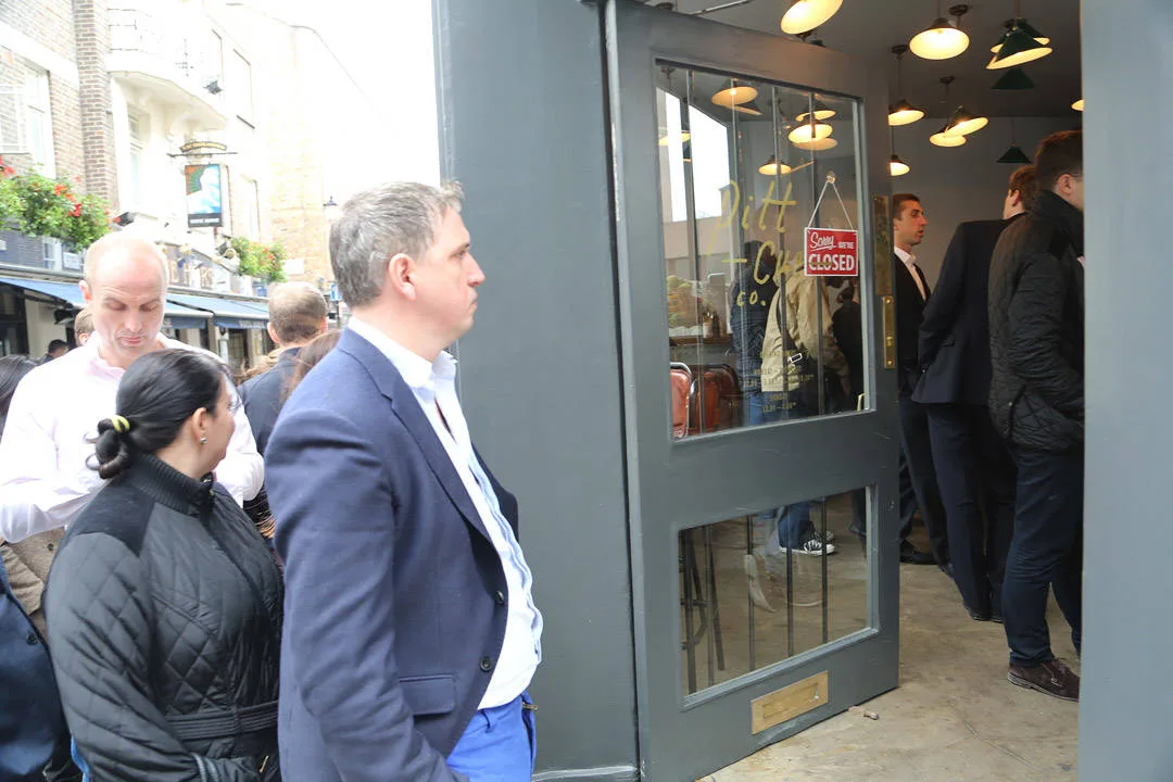 Pitt Cue åpner til lunsj kl 12.00. Allerede da står det lang kø utenfor. De har kun 30 sitteplasser i restauranten, så det lønner seg å komme tidlig hvis du skal ha et håp om å få bord. (For åpningstider gjennom uka, se Pitt Cue.)