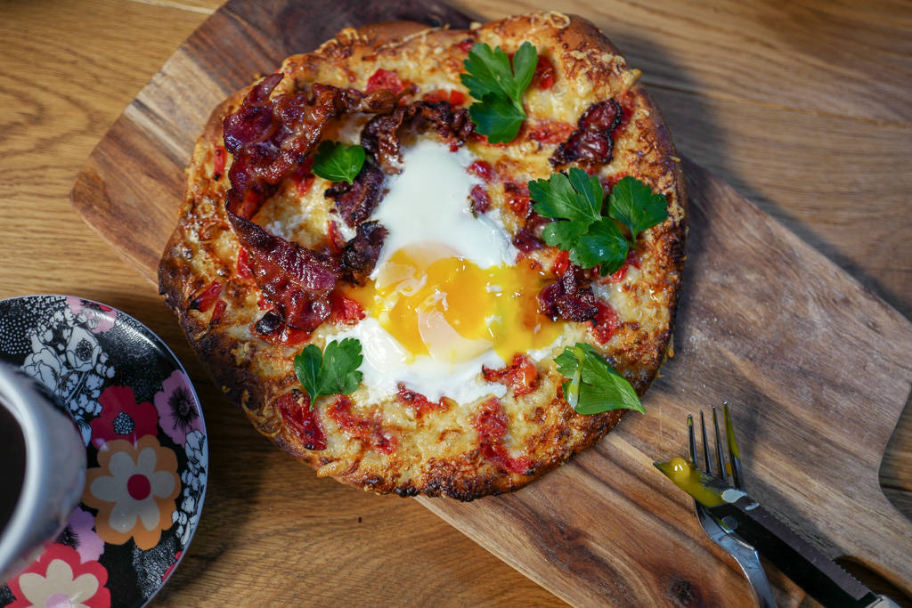 Pizza med egg og bacon