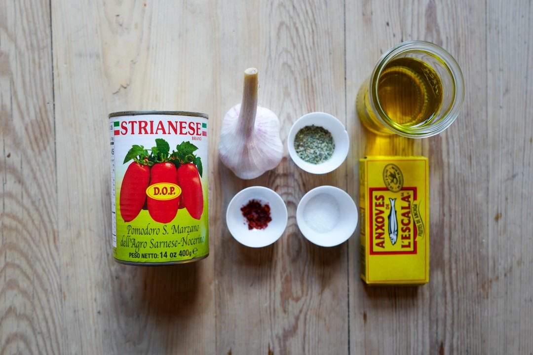 Ha olivenolje i en gryte. Varm opp og tilsett chili, hvitløk og oregano. Surr i ti sekunder under omkring og ha i tomatene.