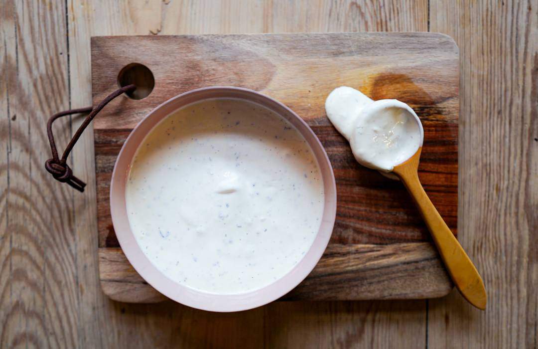 Ha sausen i en beholder og bruk stavmiksen til å kjøre alt til en glatt saus.