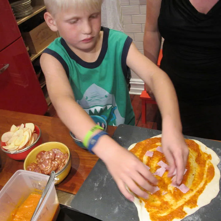 De fikk selv designe hver pizza, smøre på saus, legge på ingredienser og følge den til pizzaovnen.