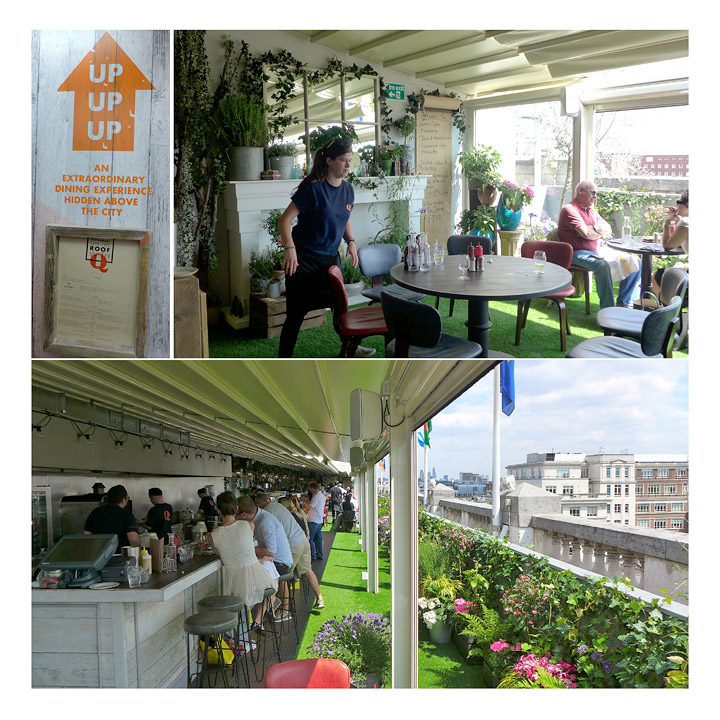 On the roof with Q er sommerens heteste tips for London-ferien. På toppen av ærverdige Selfridges kan du frem til 27. september spise lunsj på takterrassen. Dette er en Pop-up-restaurant. Den er der bare i tilsammen 18 uker, så forsvinner den. Neste år kommer et nytt konsept på taket til Selfridges.