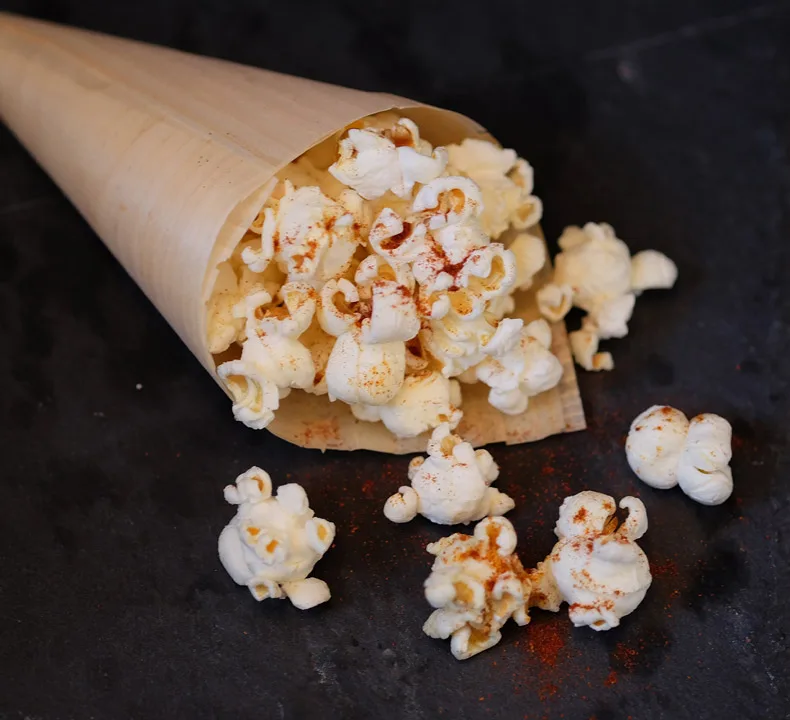 I en gryte smelter du ekte smør til det begynner å boble og lykter nøttaktig og har en lys karamellfarge. Ta skjeer av dette smøret og bland det med popcornet i en bolle. Salt lett og dryss litt røkt paprikapulver over, hvis du ønsker det. Nå har du popcorn du kan servere gjester sammen med en spennende cocktail!