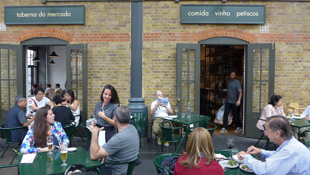 Spitalfields marked ligger ved Liverpool Street Station – et sted man kommer til når man lander på Stansted flyplass, og så drar man gjerne videre derfra. Ikke gjør det. i Dette området finnes mye kult og en av de kule tingene er Spitalfields marked. Dette markedet er for så vidt ikke så spennende, men det ligger noen kule butikker her (Med Wind er en av de kule butikkene som også har en butikk i Barcelona). Et helt nytt spisested inne i markedet er Taberna do Mercado. Dette er en portugisisk tapassted som drives av kokken Nuno Mendes, som er mest kjent for kjendisstedet Chiltern Firehouse.