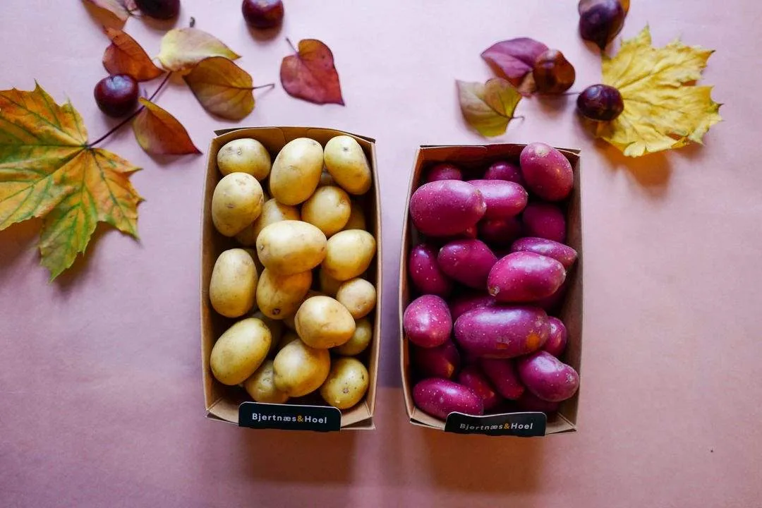 Potetene jeg bruker er fra Bjertnæs & Hoel. Disse gourmetpotetene finner du i Meny-butikker. Denne gangen er det Morenepoteten jeg har brukt – både gul og rød. De er fantastiske på smak og egner seg fint til å skjære i tynne skiver uten å koke ut. Og det er superviktig når jeg skal lage noen av disse rettene du ser nedenfor.