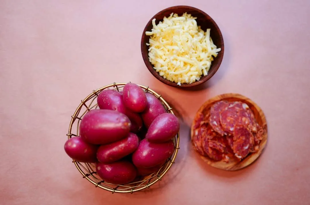 Da jeg skulle planlegge disse oppskriftene mailet jeg litt med Lars hos Bjertnæs & Hoel. – Kan du ikke lage noe med potet og ost, da? spurte Lars. Klart jeg kan lage noe med ost og potet. Det er jo superdigg!