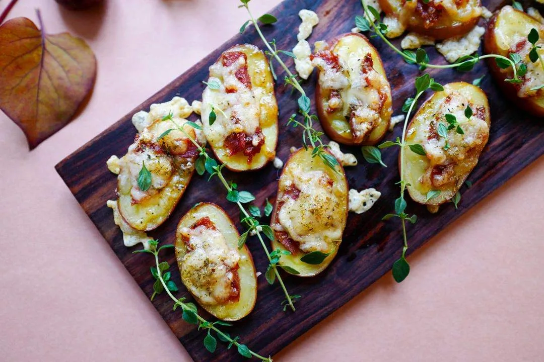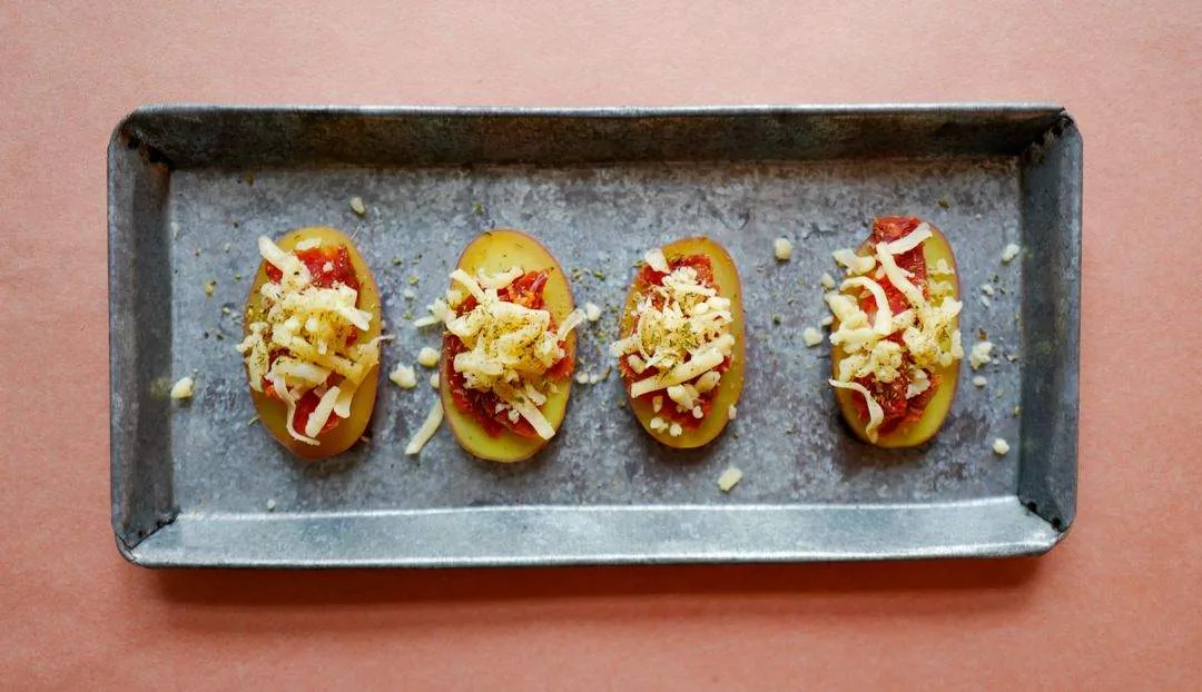 Potet»pizza» med chorizo og smeltet ost