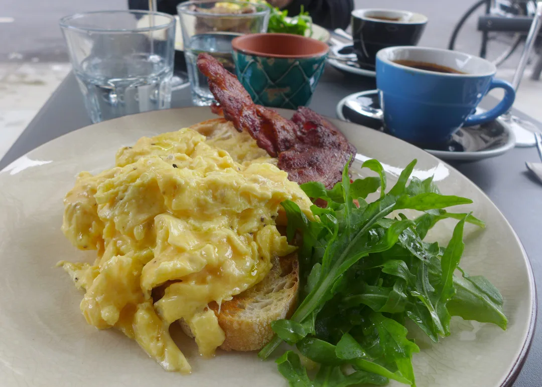 Og det fikk vi, servert sammen en deilig eggerøre med pølser og bacon – og selvsagt kaffe gjorde dagen vår perfekt.