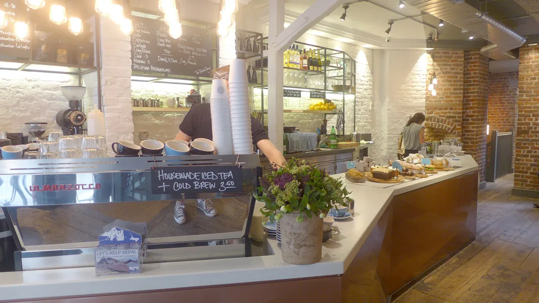 Søndag morgen i London: Vi har sovet lenge på tidenes hotell etter en fantastisk kveld på byen og vi er sultne. Vi går ut på gaten og befinner oss i den beste delen av Covent Garden, men vi kjenner ikke så godt til frokoststeder akkurat her. Vi snubler over et sted som kaller seg Black Penny. Man skulle tro dette var navnet på en halvluguber pub, men det viser seg å være en super kafé med stort og fristende utvalg av sandwicher, kaker og eggeretter.