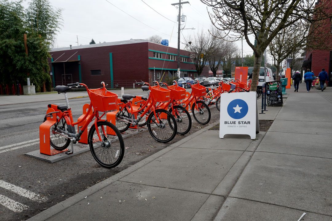 Oregon-bedriften Nike står for bysyklene Biketown. Det finnes egne sykkeltraseer i bydelene der bilistene oppfordres til å kjøre andre veier for å la syklistene være i fred. Det fine med Biketown er at du som turist kan leie sykler for en billig penge fra stativene for engangstur eller på dagsbasis.