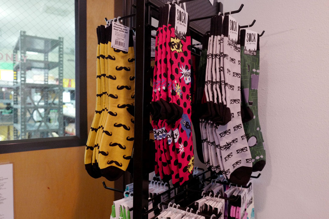 Land Gallery: Kule bøker, sokker, kort.