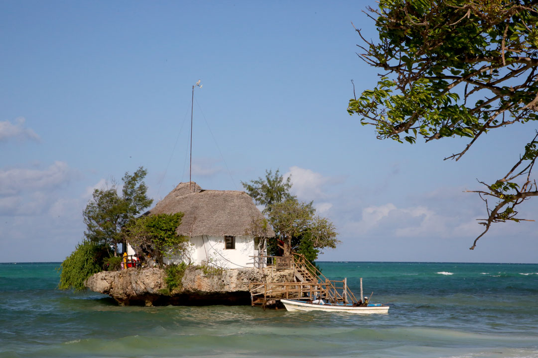 På Zanzibar ligger en liten restaurant ute på en øy. «The Rock» er en turistatraksjon og kanskje en ørliten turistfelle også? Trodde Erik og jeg… …