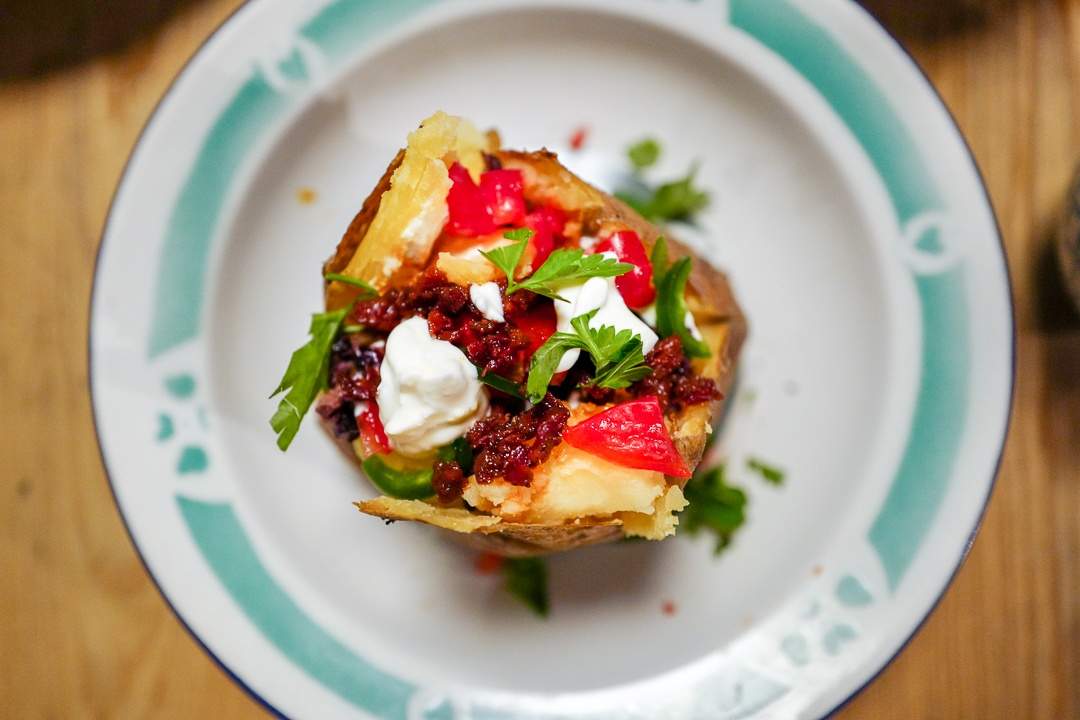 Satan, det var godt, altså. Og det aller beste er at du kan fylle poteten med akkurat det du vil. Det jeg har som fyll er bare et eksempel. Det er litt som taco. Kjør på med det du liker best.