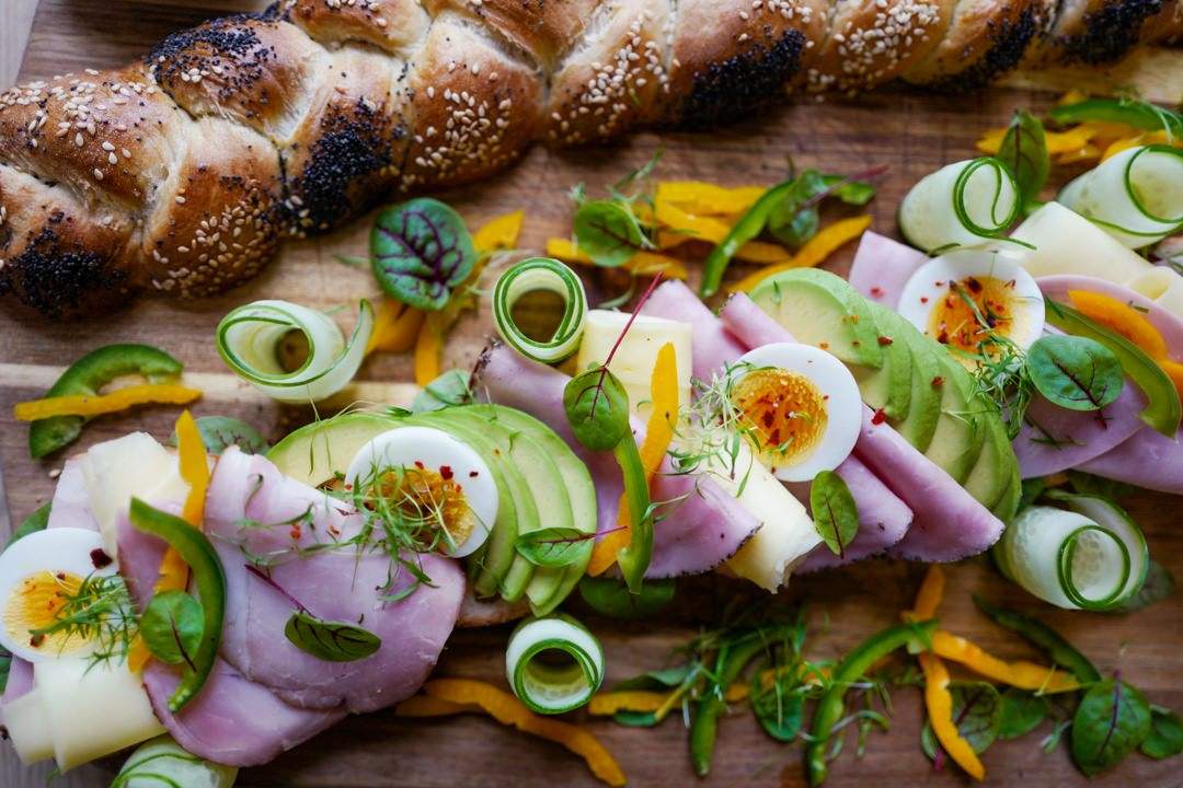 Hva har jeg fylt min landgang med foruten Grøstadgris sine deilige skinker? Jo, skiver av egg, ost, paprika, agurkremser, avokado og spennende urter. Du kan smøre med smør, majones eller kanskje litt god dijonsennep?