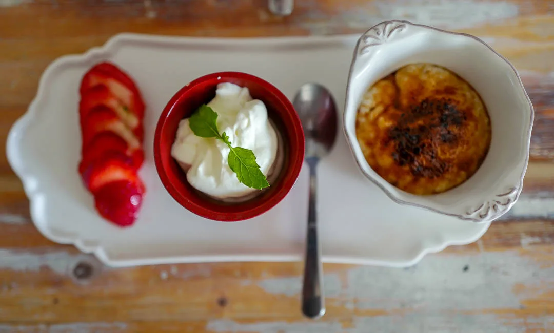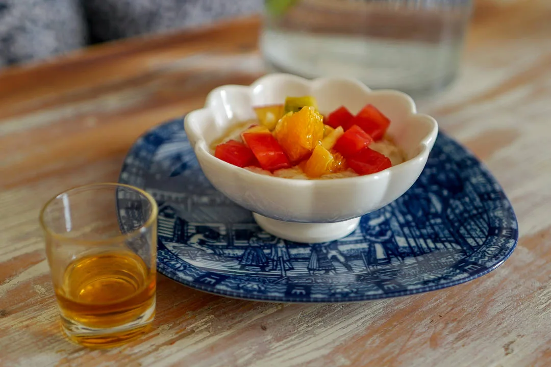 Vinnergrøten besto av nordiske smaker i form av multelikør og krem, brulert sukker og havtorn. Vi får en variant med jordbær og whisky. Farlig god!
