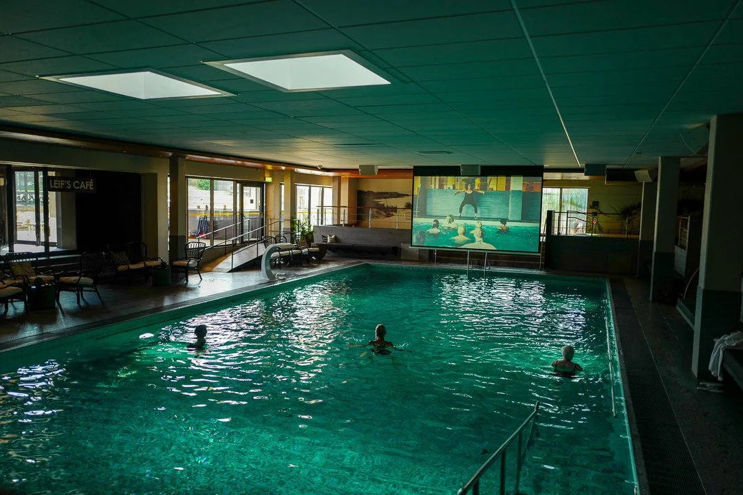 Det jeg synes er kult med dette hotellet er at du også kan se kino i det store innendørsbassenget. Du kan drikke øl, bade og se film samtidig. Det er en god idé, det!
