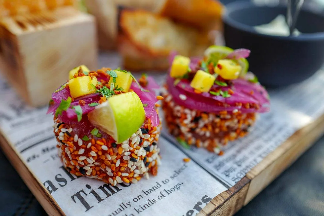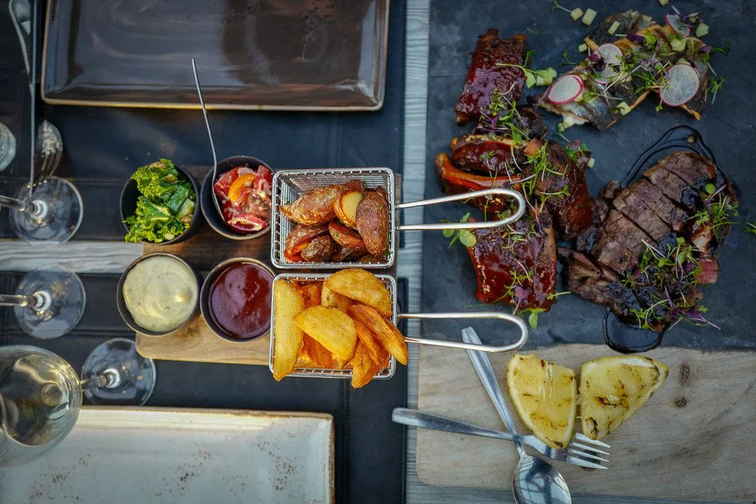 På planken ligger det hjemmelaget tortillachips med chipotle-guacamole, tunfisktartar og grillet urtebrød med deilig aioli.