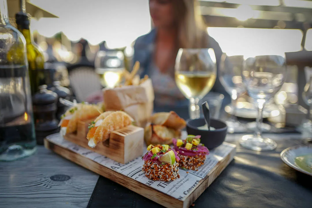 Vi går til en av restauranten som finnes på hotellet. Kjøkkensjef på Leif’s, Peter Danek har laget en meny til oss med et deilig utvalg retter. Vi sitte ute og ser solen gå ned i havet. Trillrund kule. Så vakkert.