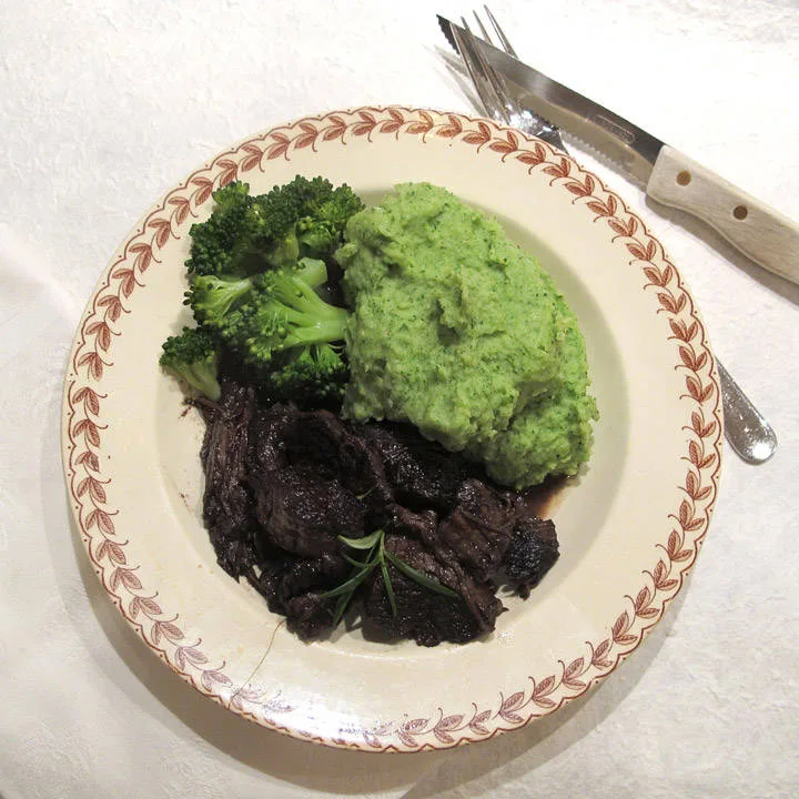 For noen uker siden fortalte jeg om da jeg lagde hjemmelaget Pizza Grandiosa. Kjøttet jeg brukte til pizzaen var høyrygg av okse, kokt i rødvin.Kjøttet som ble igjen, ble en knallgod middag. Slik gjorde jeg: