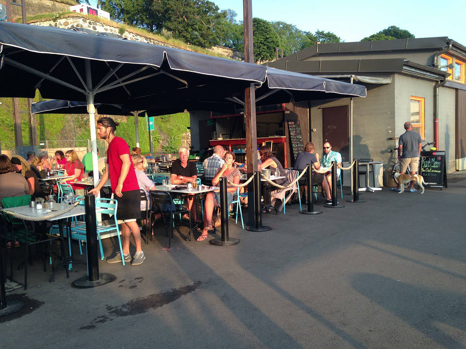 Det er sommer i Oslo og kampen om de gode restaurantplassene i solen er i gang. I går kveld fant jeg byens beste plass. Det var på Festningskaia på en restaurant som heter Royal Marine. Stedet drives av den fargerike kokken, Mona Halvorsen. Dette er en utendørsrestaurant som er åpen når været er fint og så lenge det er sesong for å sitte ute.