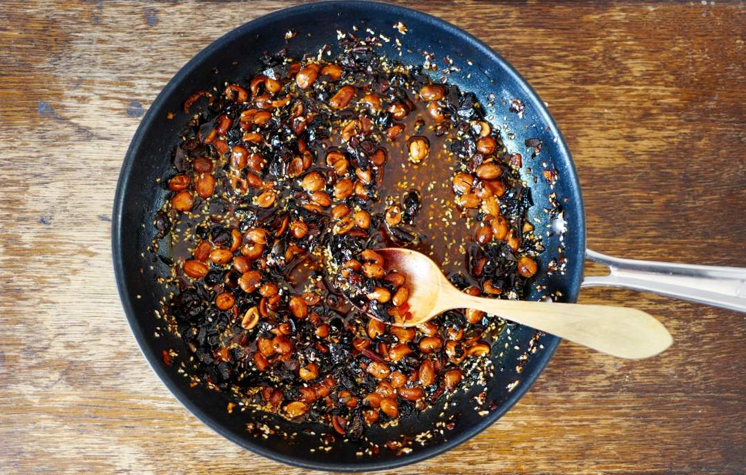 Salsa macha er en miks av tørkede chili, peanøtter, sesamfrø, litt salt, oregano, olivenolje, eplesidereddik og hvitløk. Men det er ikke bare å blande ingrediensene, det må gjøres på en helt bestemt måte og fremgangsmåten får du straks.