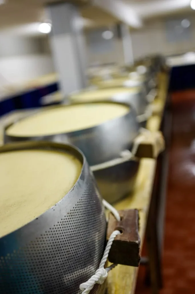 Parmigiano Reggiano lages av upasteurisert kumelk fra et utvalgt antall gårder i det begrensede området i Nord-Italia. Det stilles strenge krav til hva slags fôr kuene får og hvor mye hver ku kan melkes for å kvalitetssikre melken. Produksjonen er liten og osteproduksjonen er ekte håndverk. Det trengs ca 550 liter melk for å lage et ostehjul på ca 40 kg. Hjulet veier 50 kg før lagringen av osten starter.
