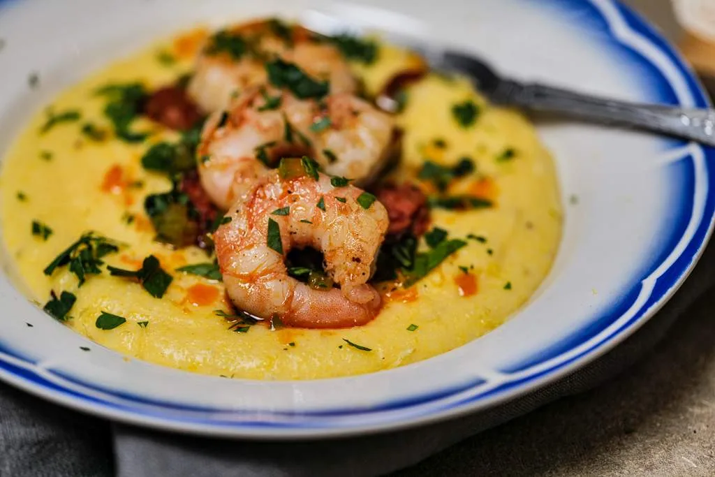 Retten kunne like godt ha blitt kalt Polenta med pepperoni og reker. Rett og slett fordi jeg har gått litt i retning av Italia i denne klassikeren fra USAs sørstater.