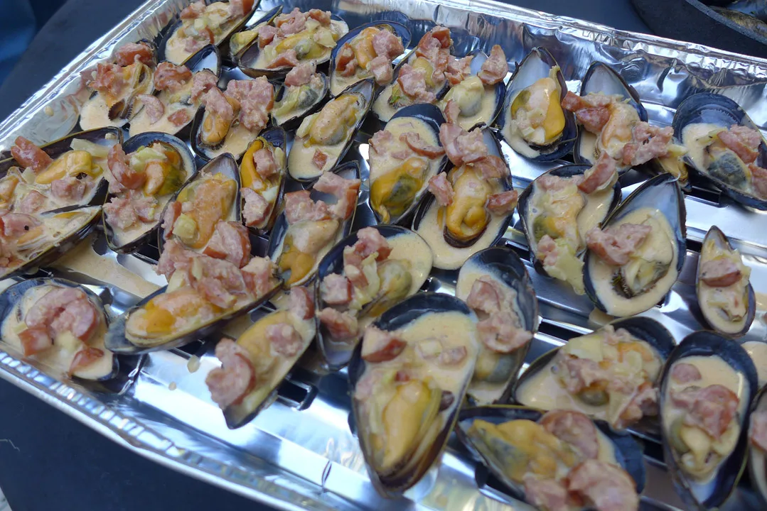 Det er jo ofte slik at gjestene gjerne summer rundt grillen, sultne, med lengsel i blikket og rumlende mager. Da kan det være lurt å «kaste til dem et bein» slik man gjør til hunder for å få dem til å slutte å tigge om mat. Denne retten er perfekt slik. La gjestene spise småsnacks mens du selv gjør ferdig hovedretten. Spar et par skjell til deg selv også. Du kan selvsagt ta del i forretten selv om du står i innspurten av hovedretten.