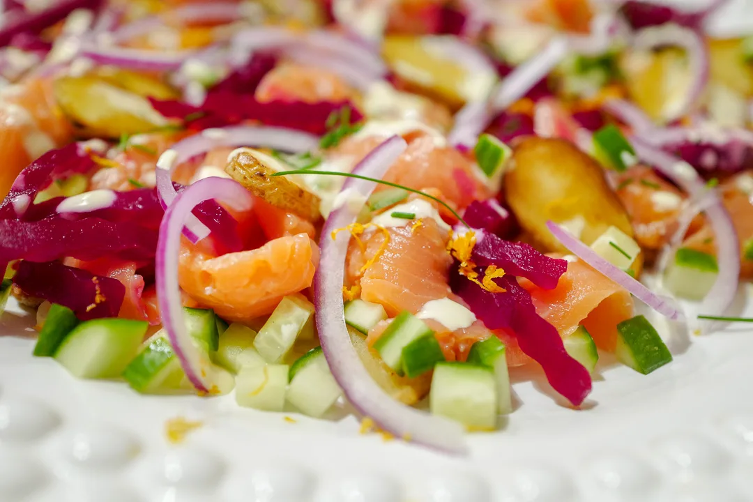 Salat til middag må mette. For meg nytter det ikke å ha grønne blader og dressing. Jeg må ha mat i min salat. Derfor putter …