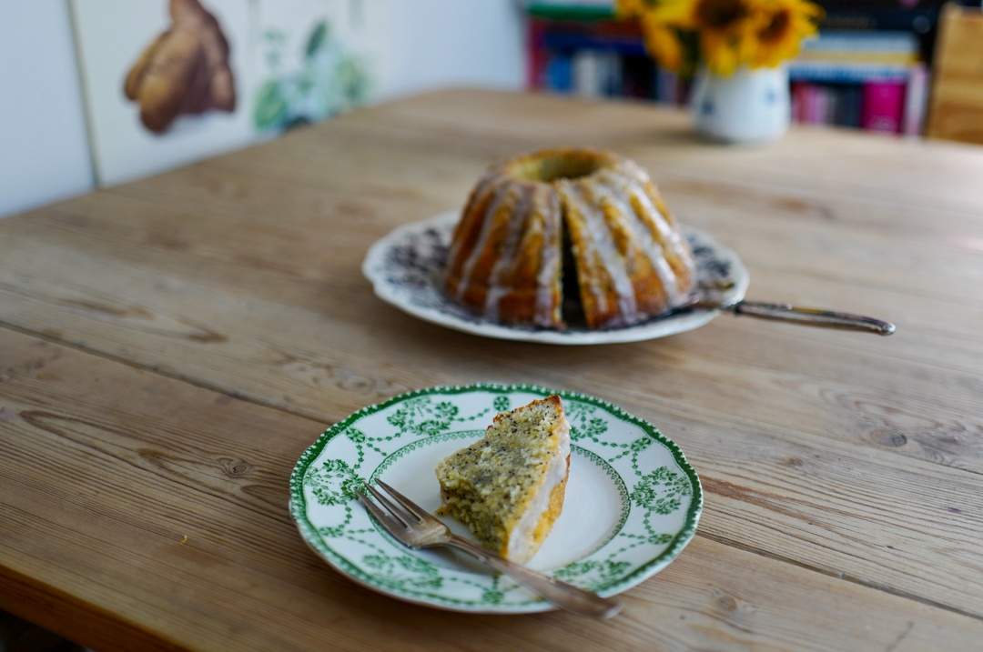 Jeg har bakt kake. Den som kjenner meg vet at jeg ikke baker så ofte, men når jeg gjør det baker jeg kake som passer godt til kaffekoppen. Denne gang ble det en sitron- og valmuefrøkake der jeg har brukt tjukkmjølk.