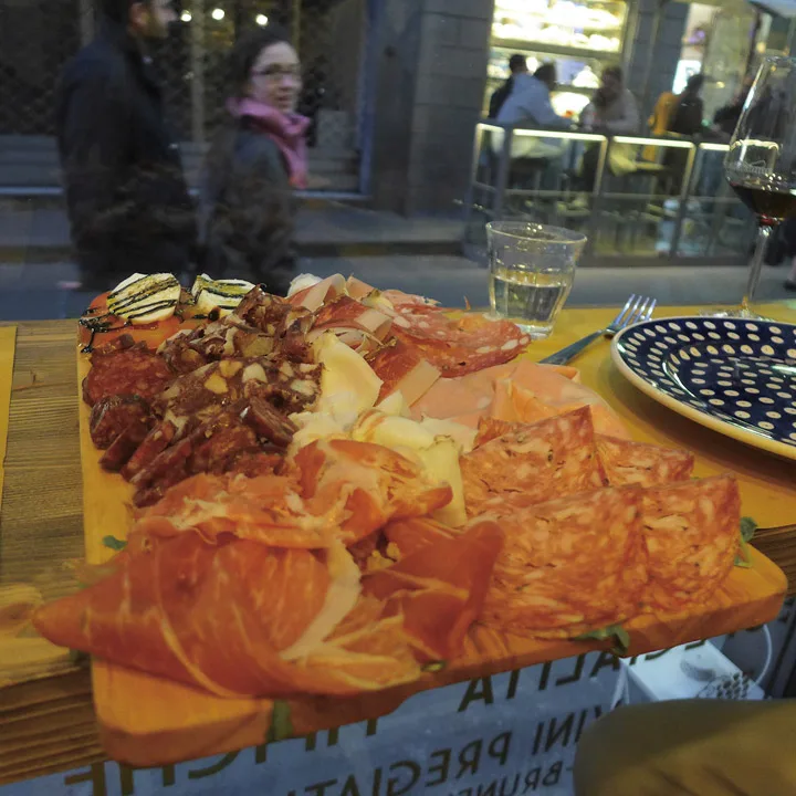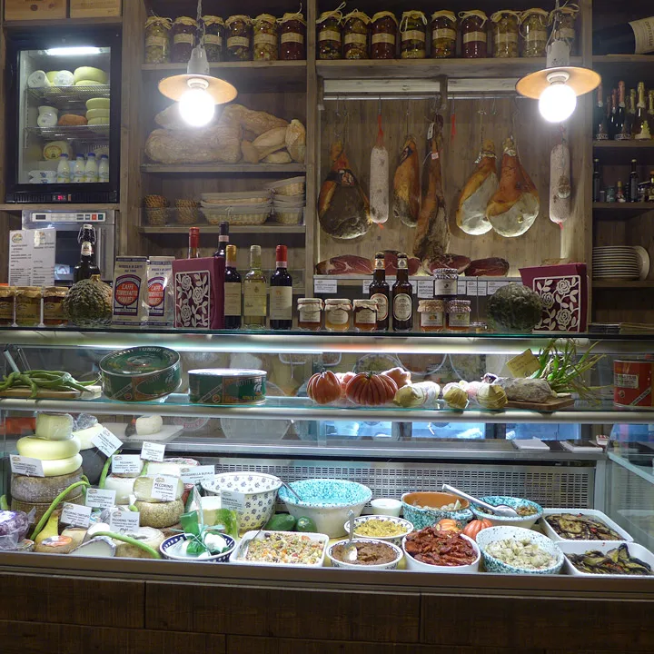 Dette er stedet hvor du enten bestiller en stor platting med et stort utvalg pølser, skinker og ost, eller bestiller enkeltvise posjoner av oster og skinker som du har lyst til å smake. Har du lyst på vin? Ja, da plukker du en fra butikkshyllen. De selger pasta, syltetøy, brennevin og masse deilige varer som man kan ta med seg hjem som gaver.
