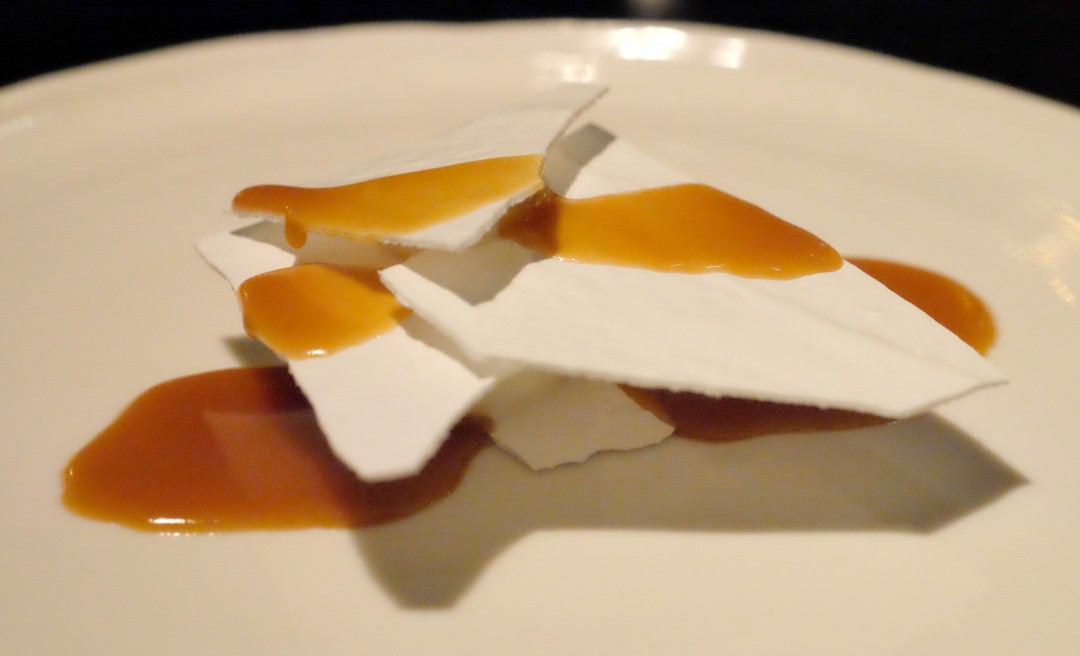 Midt i måltidet skal man strekke på beina og gå ut i hagen. Her får man servert varm eplegløgg og et par retter. Når man så går inn i restauranten igjen er de hvite dukene fjernet og musikken er forandret. Bordene er sorte og nakne.