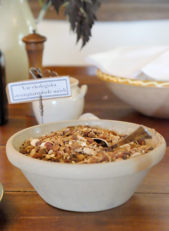 Emma har bakt og de fantastiske brødene ligger på frokostbordet som er dekket med de deiligste ingredienser. Hjemmelaget surdeigsmusli, eplejuice fra Emmas søsters juicepresse, nytraktet kaffe fra Ethiopia, kokte gårdsegg og mye, mye mer. Alt er selvsagt økologisk – noe de har skjønt i Sverige. I Norge henger vi etter på den fronten.