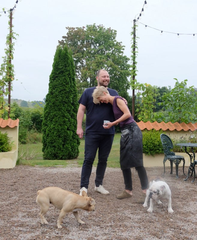Vi tar farvel med David og Emma, og ikke minst deres engelske bulldog Majo og Doris, som er fransk bulldog. Det føles faktisk litt vemodig å reise fra et slikt sted og så bra folk.