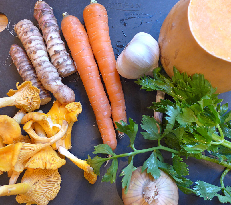Her om dagen lagde jeg en langkokt ragu av elgkjøtt, rotfrukter og kantareller. Akkurat det som er i sesong nå. Så kokte jeg pasta og lagde jordskokkchips til. Jeg tok noen tyttebær og pyntet med og for å gi retten noen snerpesure pop (det føles slik når man tar et tyttebær i munnen), litt revet parmesan på toppen og noen selleri-blader til pynt. Retten ble en skikkelig goumetopplevelse.