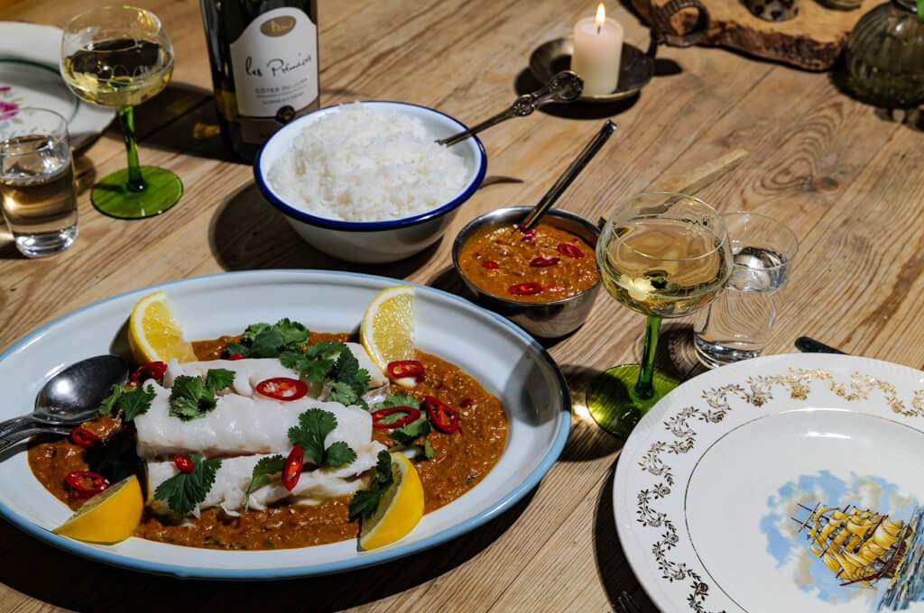 Jeg har ikke laget denne retten, selv om jeg sitter på oppskriften. Jeg har gått til kjernen av Mauritius og laget en god, innkokt curry og dampet skreien og med basmatiris som tilbehør. Du kan bruke hvilken som helst hvit fisk til retten, men det er nå skreien er er og det er ikke så lenge vi har den tilgjengelig, så benytt gjerne sjansen.