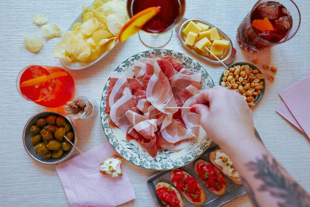 Servietter og tannpirkere holder i massevis. Du bruker tannpirkeren som gaffel til å hente en oliven, en skive Prosciutto di Parma eller en ostebit. Det skal være enkelt, godt og avslappet.