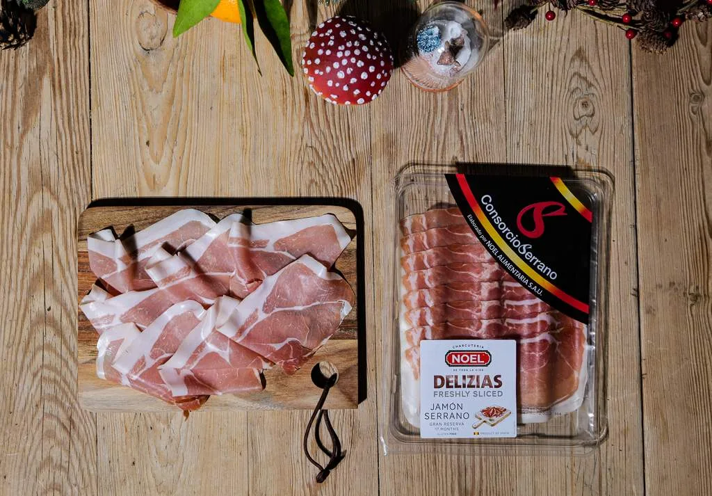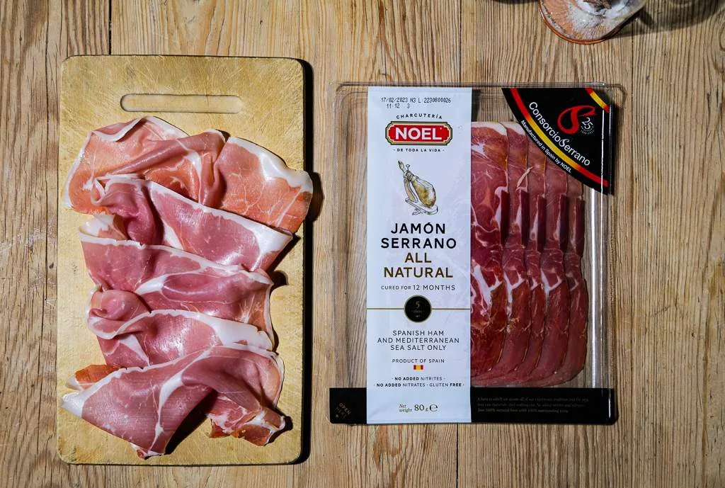 Til denne retten kan du bruke Serranoskinke (80 g), skivet, lagret i 12 mnd.